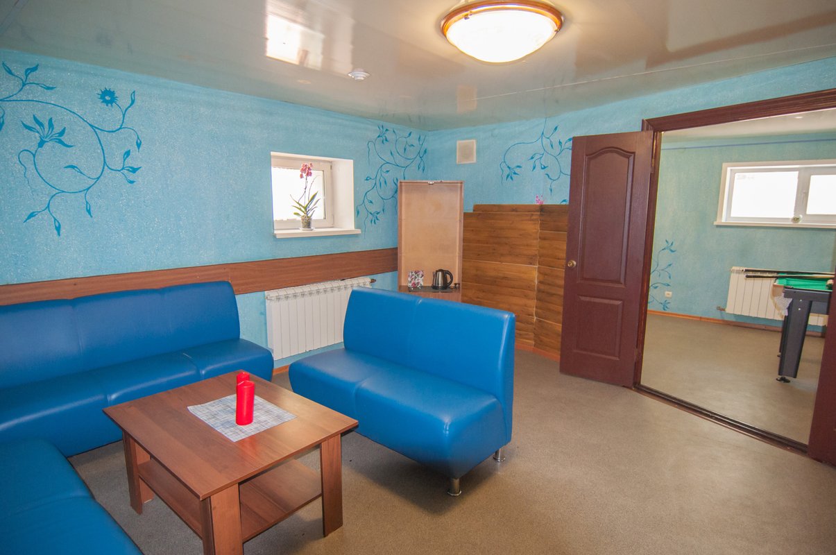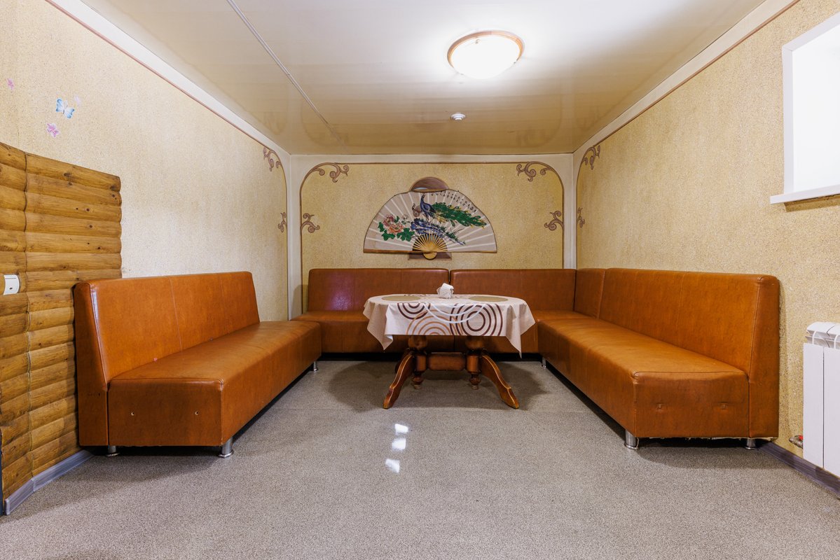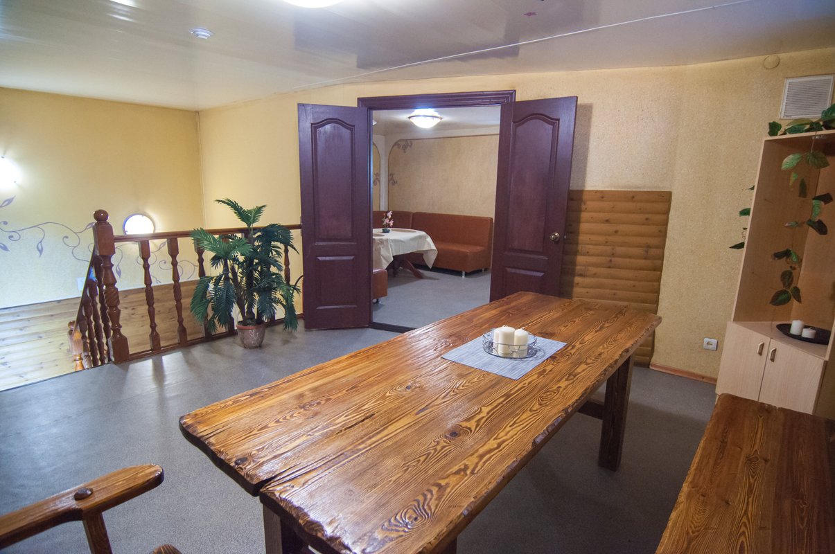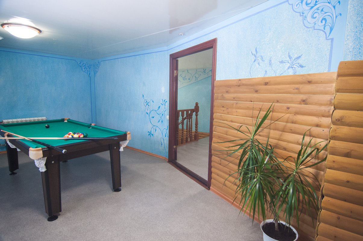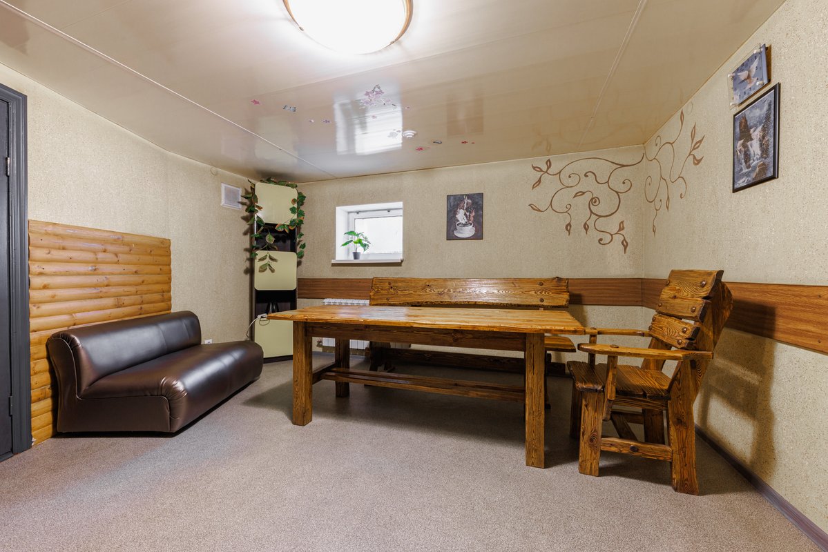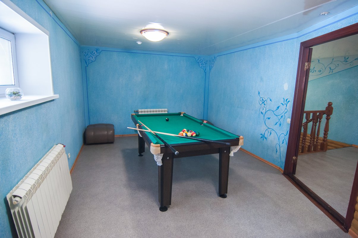 Не хочется в бассейн? Не беда! Вместо этого можно провести время в нашей комнате отдыха. Мы ставили своей целью создать здесь уютный, практичный интерьер из преимущественно натуральных, безопасных материалов, подобрать мебель, которая будет в равной степени удобной и приятной глазу. Надеемся, что вы его оцените! Для поддержания атмосферы отдыха мы можем предложить вам бильярд и караоке. У нас нет собственной кухни, но мы ничего не имеем против, если вы придете со своей едой и совместите посещение бани с небольшим застольем. Главное помните, что плотная трапеза незадолго перед посещением парной - это не самая удачная идея, по мнению терапевтов. А вот после парной - совсем другое дело!